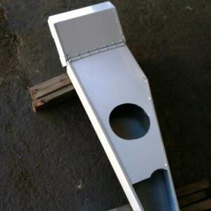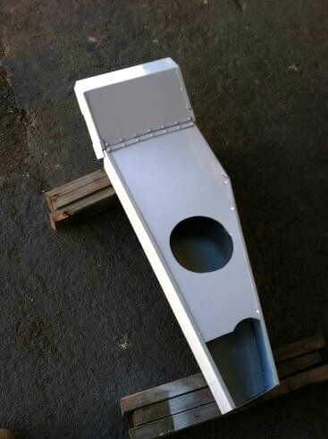 The pictures above illustrate a sheet metal repair on a unique component required for the safe operation of a key piece of equipment for one of our commercial customers. Without this component one of the fleet vehicles cannot operate in the field. You can see the difference in the exhaust port opening, we removed all bad metal and created new parts, welded them together and painted the unit with high temp paint. This repair should increase the life of this component by several years.