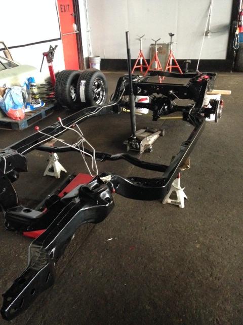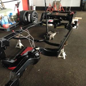 Keep posted for up-dates to this project! Currently it is sitting on wheels with new disc brakes and the entire drive train is installed. The body is scheduled to hit the rotisserie soon for sheet metal repairs.