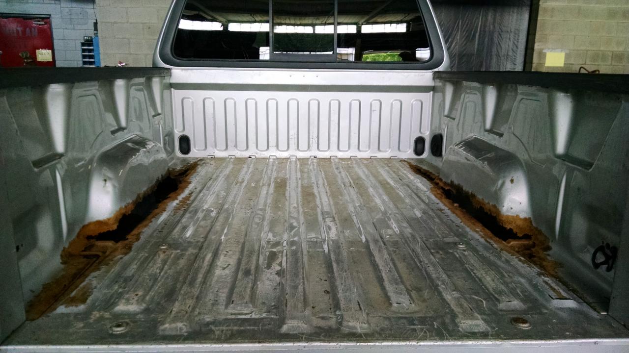 This truck was purchased by one of our customers with a plastic bed liner installed. During an annual inspection the mechanic pointed out the rust cancer. After a failed attempt to return the truck our customer was left with little choices. A new bed would cost a few thousand dollars. He brought his truck to us in the "BEFORE" photo condition. We delivered it back to him in the "AFTER" photo condition.